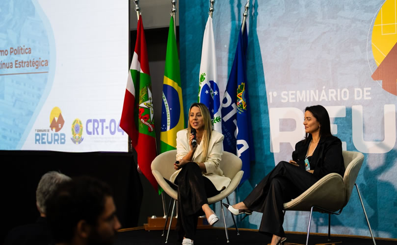 Mayara apresentou a visão mais voltada para a gestão municipal, enquanto Narayana focou na questão do mercado da regularização fundiária. Juntas, abordaram os encontros e os desafios na articulação entre setor público e privado, assim como a busca por soluções eficientes e sustentáveis.