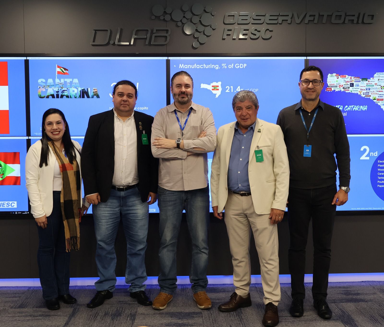 Entre os destaques, o grupo conheceu o Observatório da FIESC, um centro de inteligência que utiliza dados, tecnologias avançadas e soluções inovadoras para apoiar decisões estratégicas, fomentando a competitividade e o desenvolvimento sustentável do setor industrial. A apresentação foi conduzida pelo consultor Julio Longo.