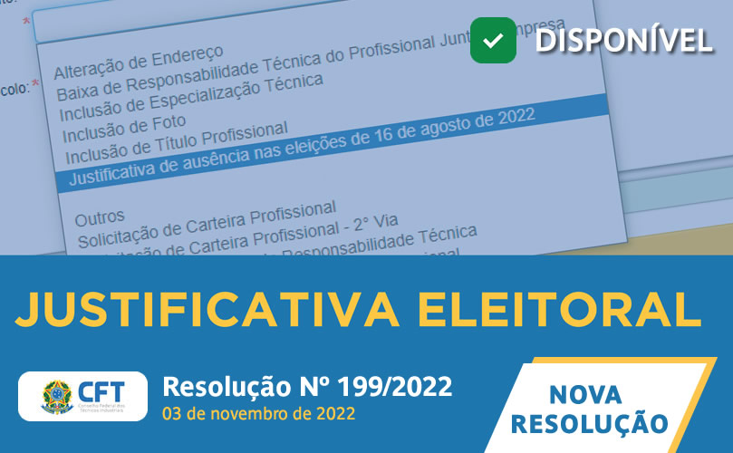 Normativa beneficia técnicos e técnicas industriais que não compareceram às urnas nas Eleições Gerais e Complementares realizadas nos meses de abril e agosto. O Conselho Federal dos Técnicos Industriais (CFT) emitiu resolução que unifica os prazos para apresentação da justificativa eleitoral 2022. A normativa nº 199/2022, publicada no dia 4 de novembro, altera o Regimento Eleitoral do Sistema CFT/CRTs e…
