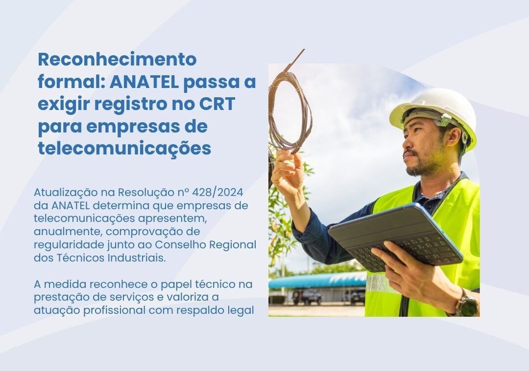 A Agência Nacional de Telecomunicações (ANATEL) publicou, nesta segunda-feira (5), a retificação da Resolução Interna nº 428/2024, com uma importante atualização: empresas autorizadas a prestar serviços de telecomunicações de interesse coletivo deverão comprovar, anualmente, a regularidade junto ao Conselho Regional dos Técnicos Industriais (CRT). A norma acrescenta o registro no CRT como um dos documentos obrigatórios a serem apresentados pelas…