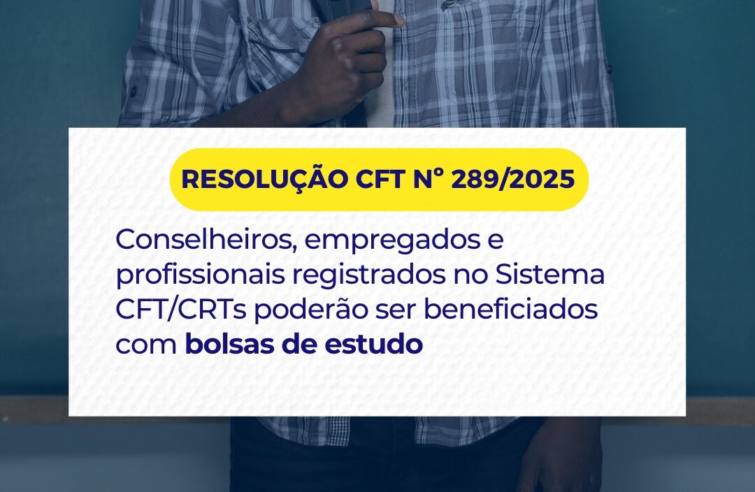 Foi a aprovada a Resolução CFT nº 289/2025 que institui a política de bolsas de estudo no âmbito do Sistema CFT/CRTs.